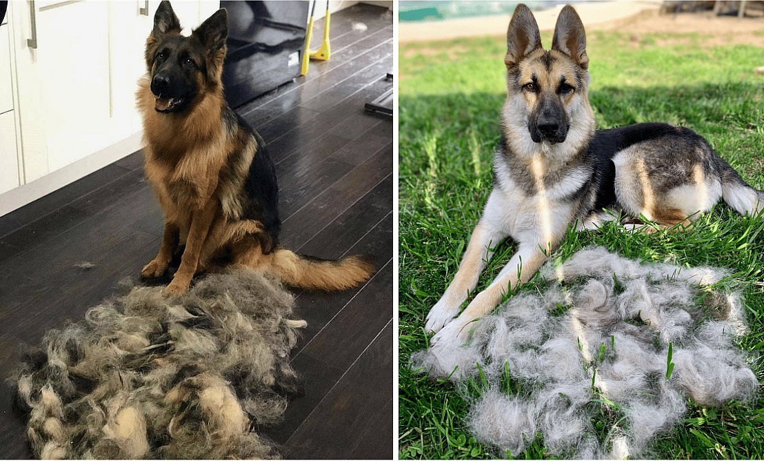 Like other double-coated dogs, German Shepherds shed moderately year-round and blow their coats during seasonal changes where they drop all dead/loose undercoat to make room for new growth.