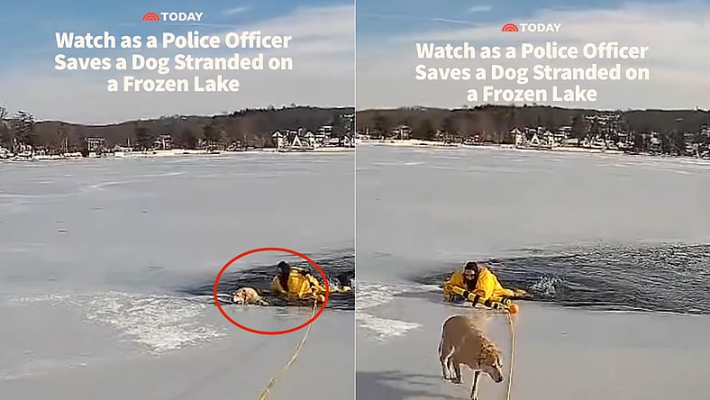 WATCH: Hero Officer Crawls Onto Thin Ice to Save Drowning Dog.