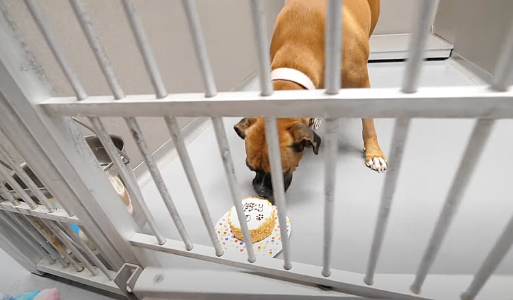 The next step was to deliver the cakes to a rescue in Los Angeles called Boxer Rescue LA. The video shows the dogs at the rescue being treated to birthday cakes and a celebration of their special day. The rescuer and his team were touched by the experience and decided to cover the adoption fees for all 30 dogs at the rescue. They donated $9,000 to the rescue to cover the fees, and the rescuers were thrilled with the donation.