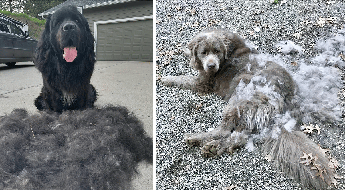 Have you ever seen a dog with so much shedding fur that it just flakes off of them? Well, meet the Newfoundland, a breed that sheds year-round with periods of extra-heavy shedding.
