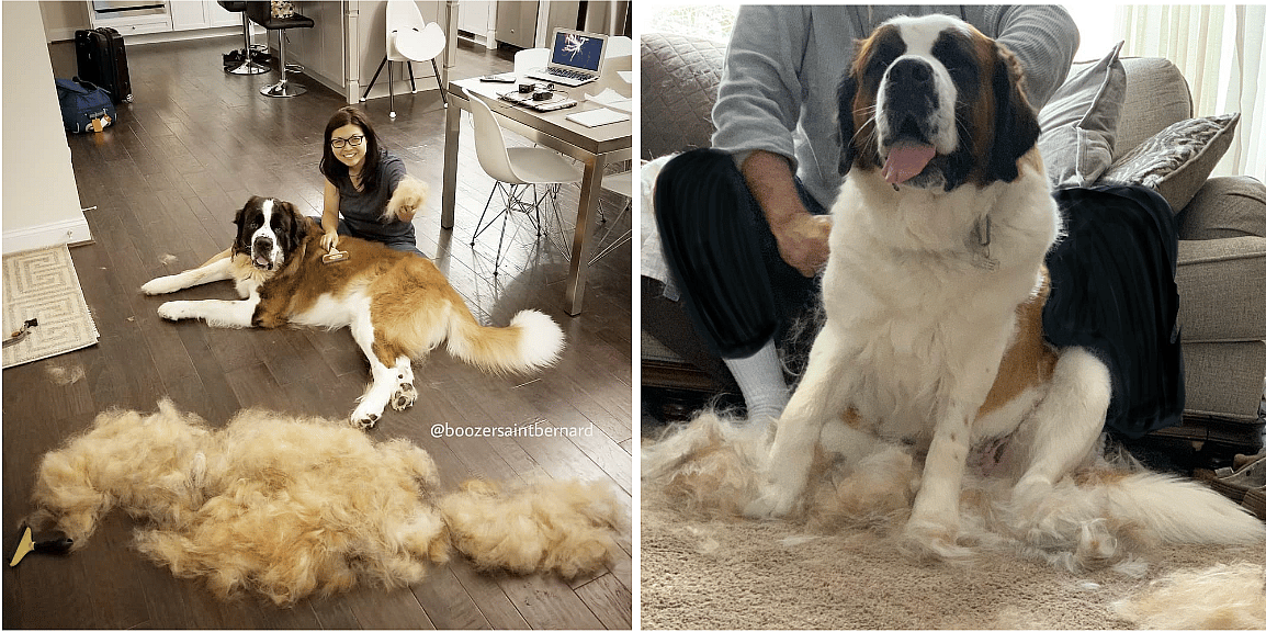 It’s a good thing Saint Bernards like to lounge because deshedding one of these dogs can take days of brushing! Don’t get a St. Bernard if you don’t like spending one-on-one time with your dog and a brush.