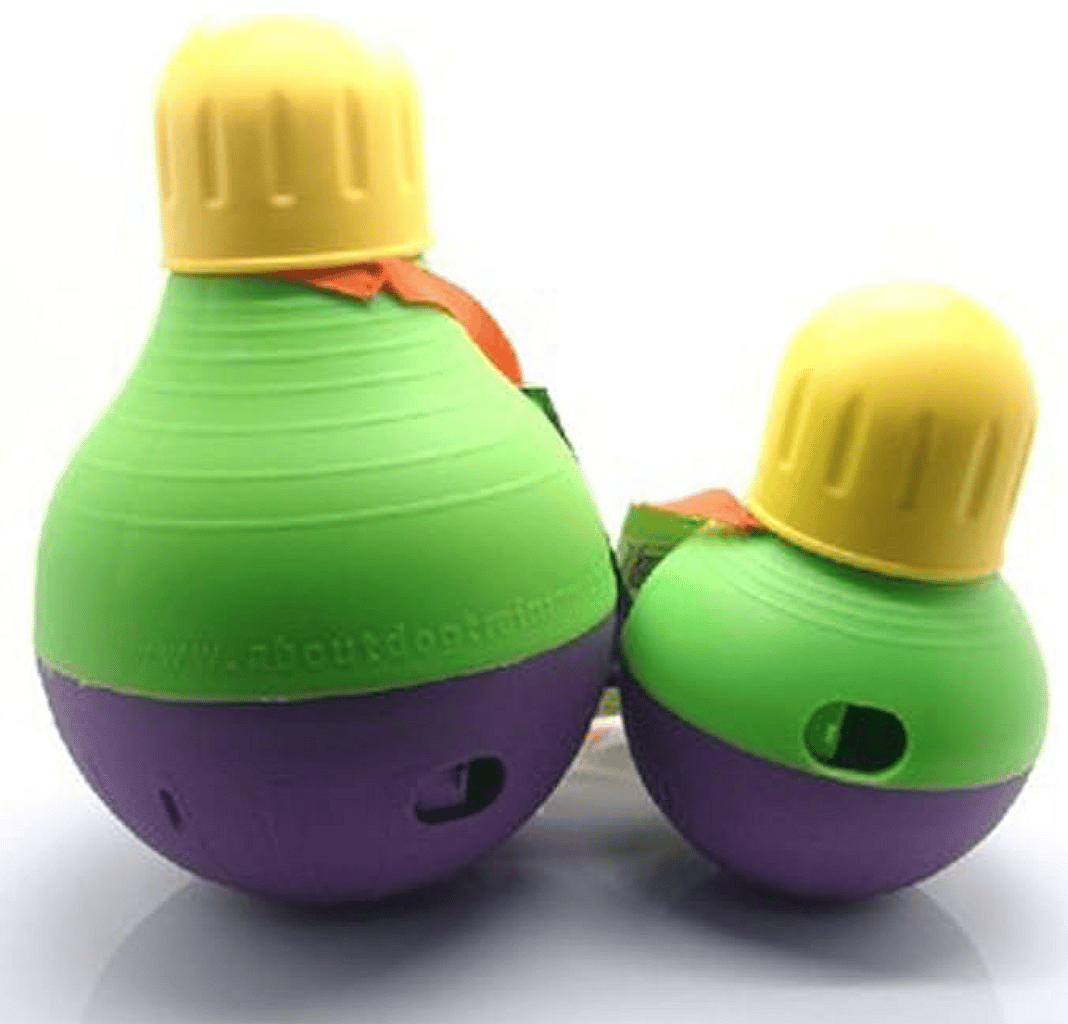 Do you remember those fun blow-up bop bags you punched when growing up? This dog’s bob-a-lot treat dispenser is similar. It’s a puzzle toy that can be filled with treats for your pooch to retrieve.