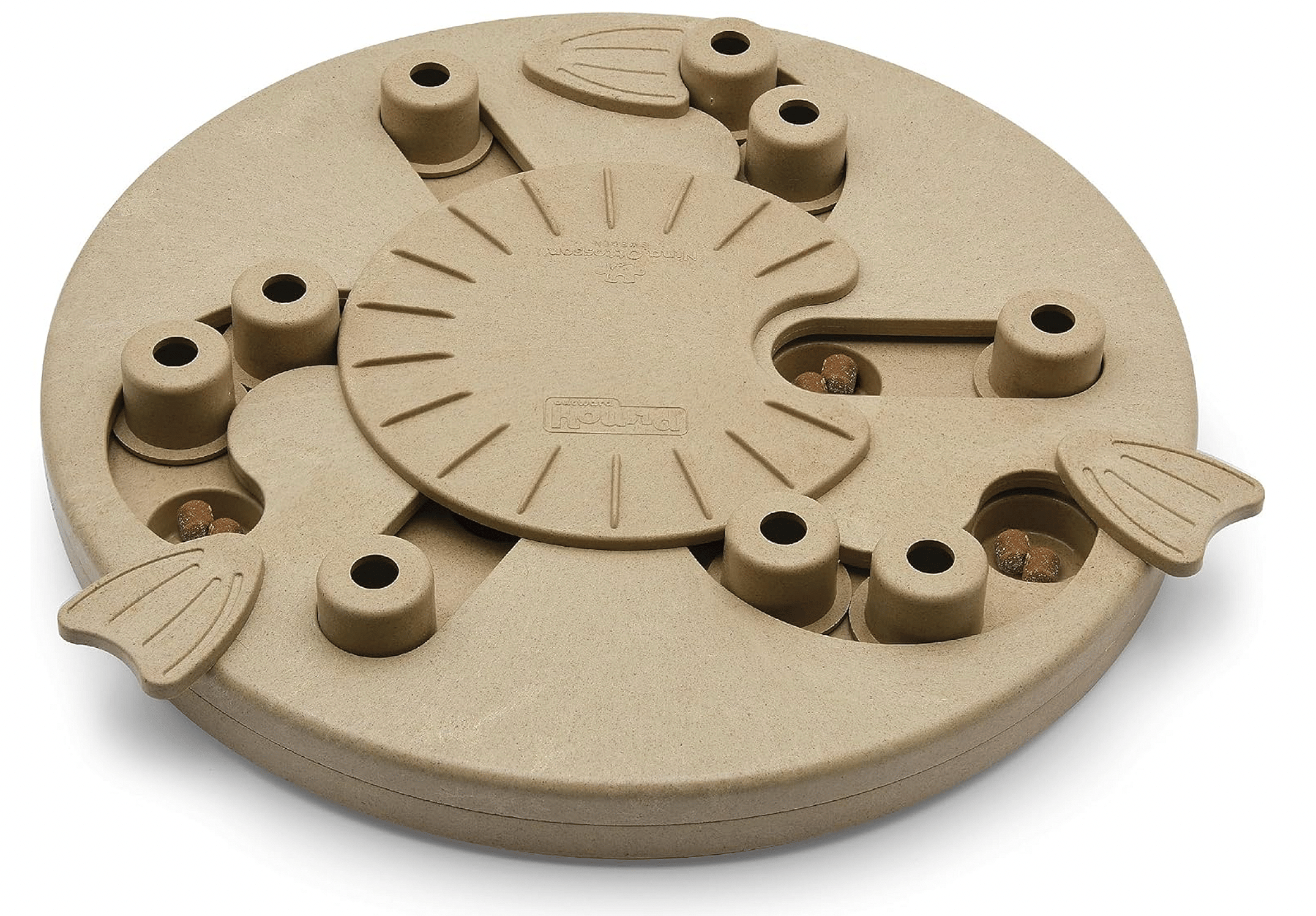 The game has an inner wheel that dispenses treats, and a win depends on how the treat covers are positioned to reveal the goodies. Therefore, high-level cognitive skills are required to play successfully. The game is perfect for dogs with advanced puzzle-solving skills.