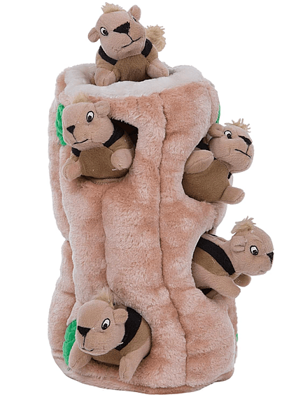 This is one ultra-cute plush puzzle toy that is not only soft and plush but also provides a fun hide-and-seek experience for a squirrel-obsessed canine—focusing on prey instincts.