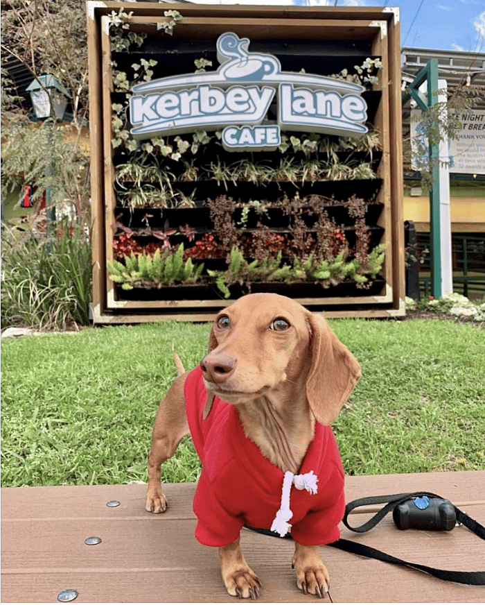 The first stop on our tour of tail-wagging dog-friendly restaurants in Austin, Texas is Kerbey Lane Café. Open for breakfast, brunch, lunch, and dinner, this quaint spot is perfect for a quick bite or a full meal.