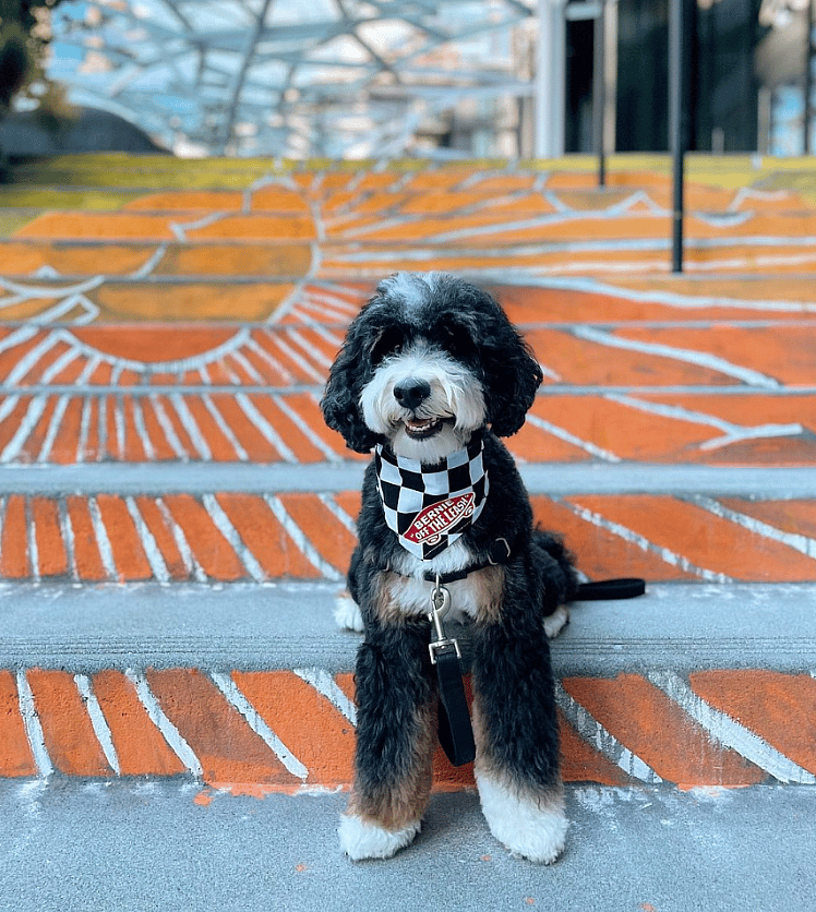 Born in 2020, Waffles the mini bernedoodle is living his best life! This Insta-famous pup is the perfect example of the breed’s laid-back nature and intelligence.