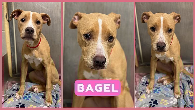 Bagel is a 6 month old female Pit bull, who was unfortunately turned in by her owner due to them not being able to afford to care for her anymore. Bagel is a nervous girl – coming in shy and shut down, sticking to the back of the kennel where she feels safest at this time. The owner had for only around 4 months, and at her young age, she is clearly lost in the world, unsure of what to expect next.