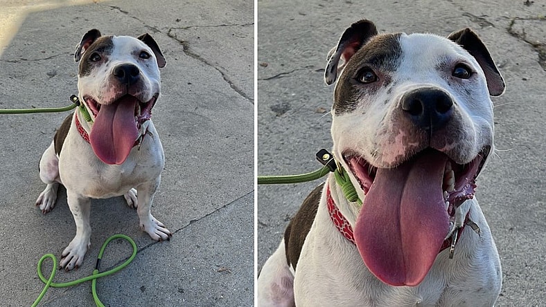 This beautiful cow printed dog could be American Bulldog blended from a breeder. She was found stray in a bad section of Los Angeles and ended up in an overcrowded public shelter. She was kenneled with another dog who made it out, but she was left, only to be put on a euthlist due to lack of space. BETSYBoo is a loving sweet young adult perhaps 2ish. She is loyal like breed tends to be, happy, loving, sweet.