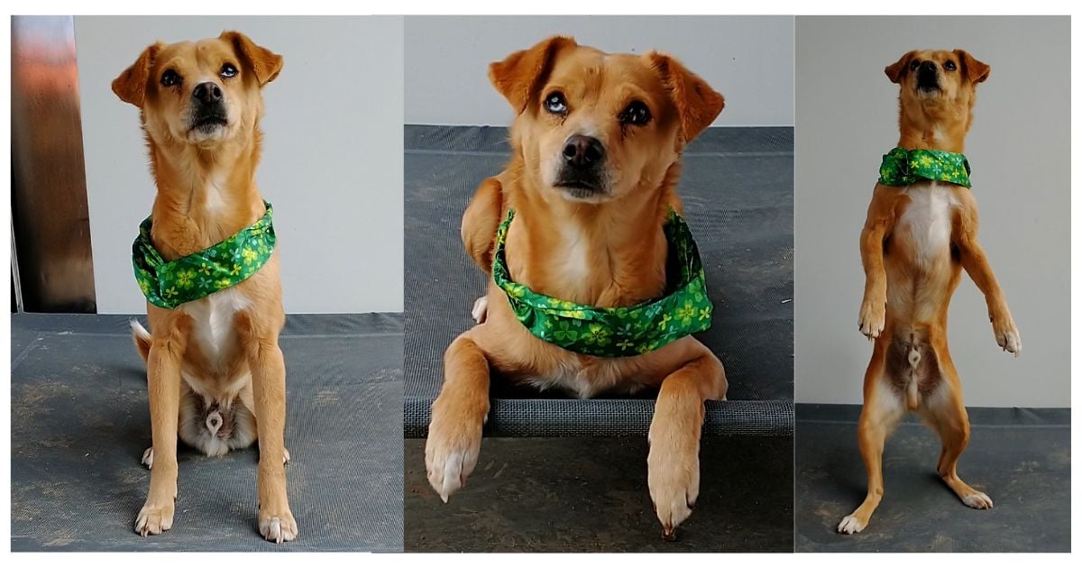 Blue, formerly Grumpy, was part of the Snow White litter of chi/terrier/poodle pups. Light brown, and with a streak of blue in his right eye. He is now 3 yrs and 23 lbs. He was adopted as a pup and was later returned to B&B as he did not take to strangers. He knows many commands and is now part of our “house crew” where he is friendly with humans and all other k-9s.