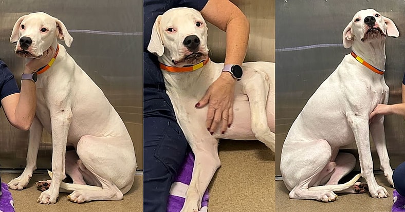 Casper is a 1.5-year-old Dogo Argentino male mix that was dumped in the night drop after hours. Fearful, shaking, and clearly shut down with no information left behind, the shelter marked him as stray initially.