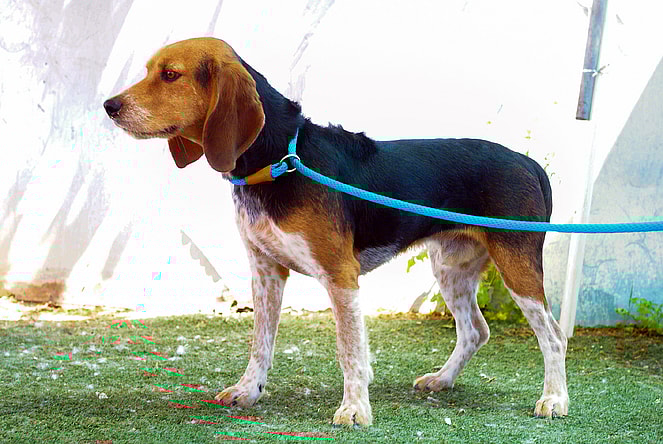 Charlie, a 3-year-old, 45 lb tri-colored shelter rescue with blue ticking, is currently adjusting to life at Beagles & Buddies since late March. Given his sensitivities, he is best suited for a home without children as he settles into his new environment.