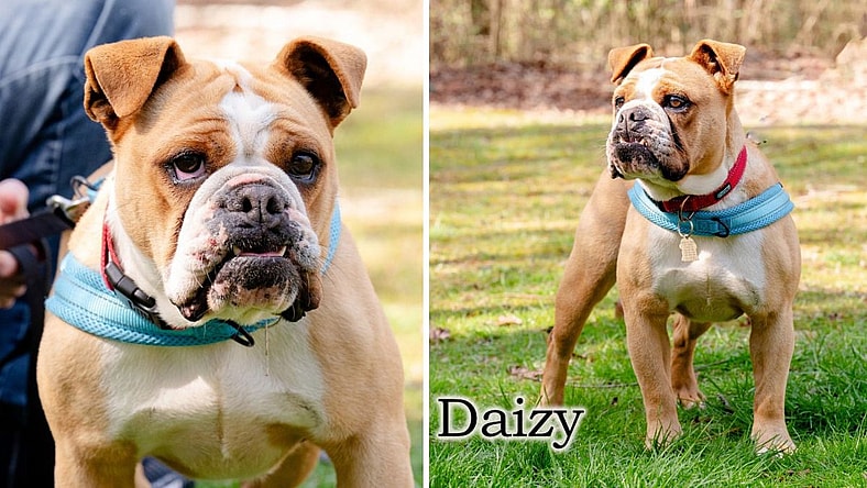 Please welcome back Daizy – an AKC registered English Bulldog. She is a 4-year-old pretty girl who was returned through no fault of her own. Daizy’s last owner’s lifestyle changed so she was not given proper exercise. Along with excessive feeding, she unfortunately is now overweight. The good news is she has already lost a few pounds, so measured meal portions and several walks a day are the key to her continued weight loss success and becoming her best self again. She is a true beauty and loves people. Daizy wants to be queen of her own domain, so she would prefer to be your one and only canine companion.