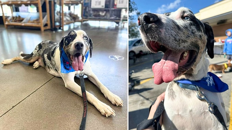 Ernie is a sweet and handsome Catahoula mix…approximately 3 years old. He prefers a tight schedule/feeding time, with naps in his crate (door open). Ernie does well with other dogs (as long as they are not jumping in his face) and seems to do ok with cats. He is fully vetted, heartworm negative and microchipped. Ernie loves people, but prefers to hang out with men, and be their best buddy! He’s a sweet boy, and beautiful, as well! He is food motivated, so training works very well, with treats! If interested in adopting, please fill out our online application: www.salvagedsoulspetrescue.org