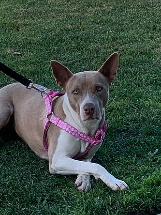 I rescued her from the Jurupa Shelter on Dec. 26 believing I had a forever home for her. It did not pan out for her because she is a fence jumper and the lady was older and did not want the stress of having to look for her. She is 3 yrs old, spayed and microchipped. She is not aggressive and loves people. She loves attention and wants to run up to everyone for some love. She loves car rides and will try to jump in if the door is open. I’ve tried to find her a home and have not been successful. She loves going for walks when I can get her out for one and loves to play with large dogs.