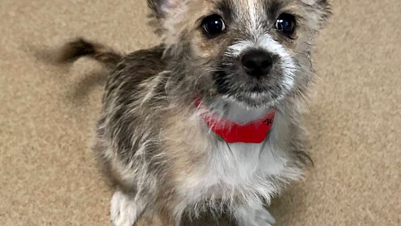 Giggles is a 2-month-old Terrier puppy that Rocky came across as he was walking the shelter, and heard that Giggles was adopted, but then returned just for acting like a puppy. Motivated by the need to educate people on puppy behavior (and because she is just adorable), Rocky sat in her kennel with her.