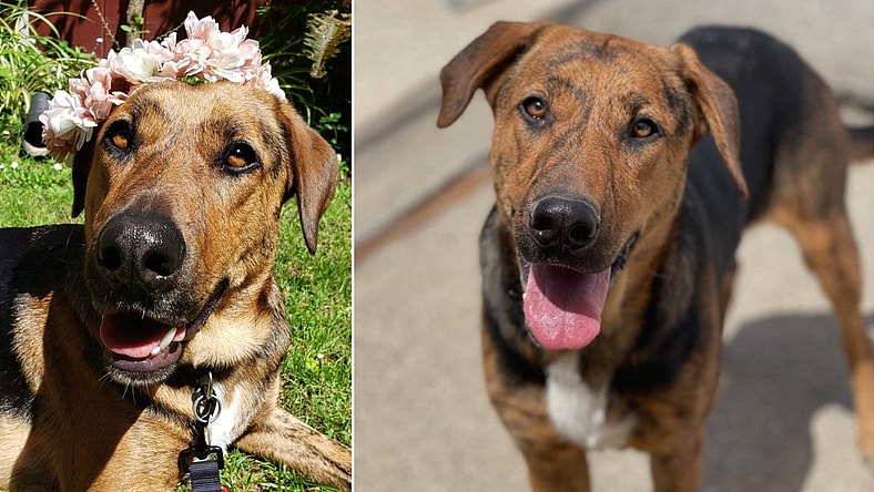 She is fearful at first when meeting new people and other pets, but once she knows you she is the most loving and affectionate companion. She loves treats and playing ball. Juniper is about 2½ years old. She is listed as a Plott Hound, but I believe she more resembles a Polish Hound.