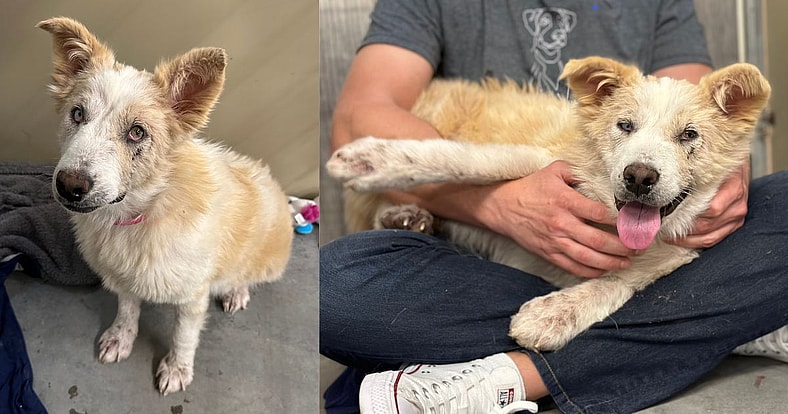 Katie was found by a good samaritan as a stray and brought into the shelter in a tough state. She has Demodex mange that has taken over her skin, and at only 1-year-old, she is immunocompromised and isn’t built to handle the mites, which is causing her skin condition along with swollen paws. She is thought to be an Australian Shepherd mix, and is currently on medication thanks to the shelter to help ease her irritation.