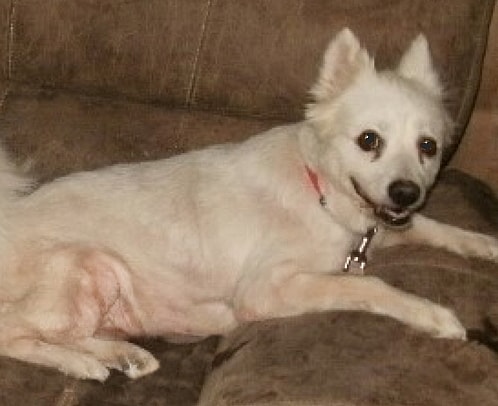 This beautiful purebred American Eskimo Dog was the companion of a senior lady from the time she was a puppy. Sadly, the lady was recently taken to an Alzheimer care facility and her home was sold. The couple who bought the home found Lovey living in the backyard! The neighbors, who had been feeding the dog, filled in the details and the home buyer set out to find a rescue to take Lovey.
