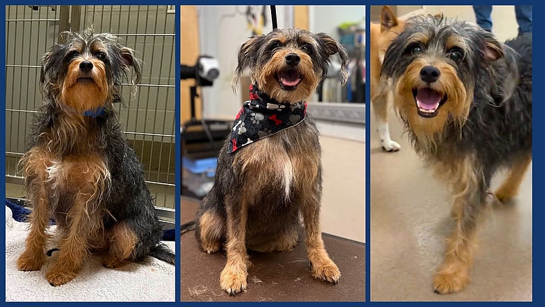 Monty a 6 year old male Terrier mix, came into the shelter less than a week before Rocky came across him. After an unfortunate eviction, he was surrendered by his parents as there was an incident with the other dog in the home – they got into a fight over food, and after the event, Monty has been terrified, and has never been the same since. His parents felt they had no other options, and decided to bring him in, with tears in their eyes. They also considered how horrified he may be without them in his life, and didn’t know if putting him down would be the best option, but the shelter immediately intervened and said they would evaluate him and not jump to that route. At the time of his surrender, the shelter team was unable to health check him as was “overstimulated” and needed more time.