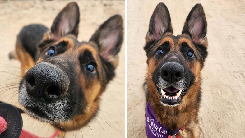 Murdock’s world has always been dark, but the shelter has made it even scarier. This three-year-old blind shepherd was found as a stray and brought to Maricopa County Animal Shelter in Mesa, AZ. With over 200 dogs, the shelter is an overwhelming place for any pup—but for a dog who can’t see, it’s a nightmare.
