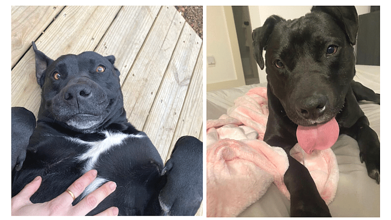 My husband and I took him for a walk and he was running so fast to smell all the new smells. He had never seen grass, he had never met another dog, everything was new. He had been sleeping in his deification so he smelled so bad so we immediately took him to get a bath and he was so happy. I thought after experiencing this kind of neglect he would be aggressive but he is so gentle and submissive.