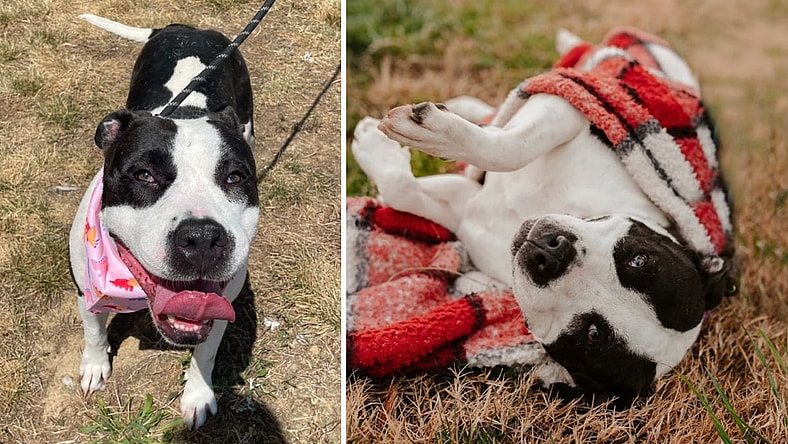 Meet Rosalind! Rosalind came to us from a neglect case with four other dogs, and she is now looking for a cozy place to call home. Rosalind is a beautiful black and white pit bull terrier mix, and she was born in early 2019.