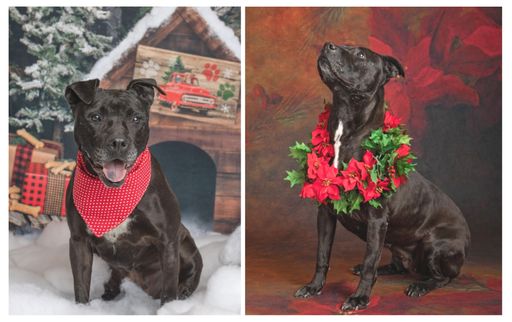 Roxy is about 9 years old. She’s a Staffordshire Terrier mix who’s active and playful. She loves to snuggle and is well-behaved. Her favorite things are belly rubs and snacks.