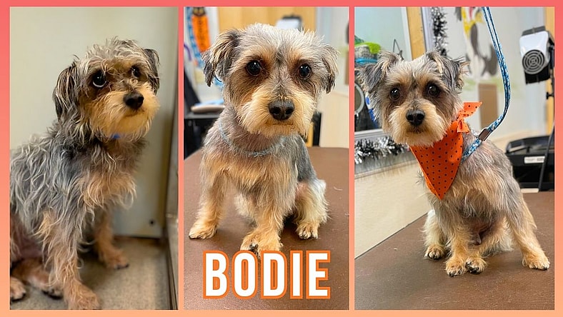 UPDATE 10.23.25: The results are in – BODIE is his name! Bodie is now on Flip’s Farm to behaviorally rehabilitate. Adoption applications are open! However we do ask for patience and understanding as he will need some time to decompress/heal on the farm before deciding on his new forever home.