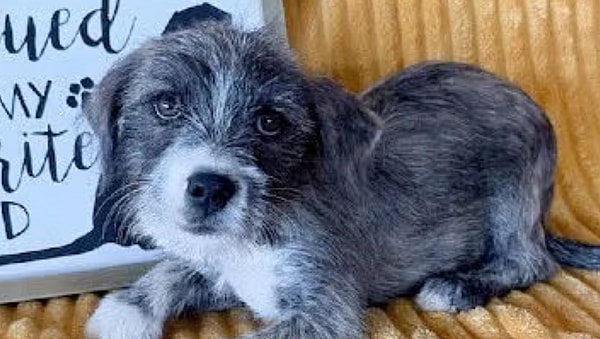 Faye is a 12-week-old Schnauzer/Terrier mix who currently weighs just 7 lbs. Don’t let her small size fool you—this girl has a big, bubbly personality! Faye is all sugar with just a touch of spice. Her playful spirit and gentle nature make her a hit with dogs, kids, and likely even cats. She’s crate trained, doing great with her potty training, and is always up for sharing puppy kisses!