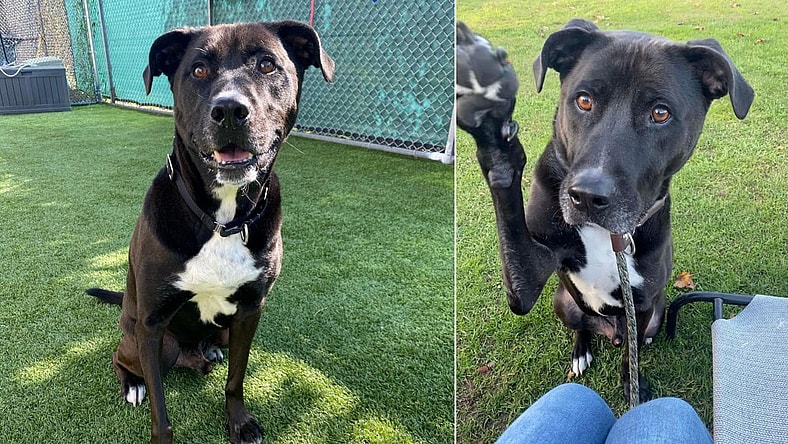 Stewie’s story is a sad one. We found him tied to a pole outside of the Town of Hempstead Animal Shelter, with a bag of food next to him and an old injury to his front leg. After multiple diagnostics, it seems that Stewie seems to have an old nerve injury that prevents him from fully using his front leg properly – but, he is not in pain! He gets around just fine and is happy as can be playing in the yards!
