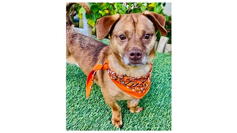Tito is also great with kids, and he loves to play fetch and chew toys. The one special thing is that he cannot be left along with plush toys, soft dog beds, and blankets because he will chew and eat them. So he sleeps on a tough dog pad if he’s not being cuddled or watched by someone. Tougher toys like Kongs, benabones, etc are much better choices for him. He is available through Lovebugs Rescue in southern CA and he is a 4 year old Dachshund mix, possibly with Beagle. Don’t miss your opportunity to add this love to your home!