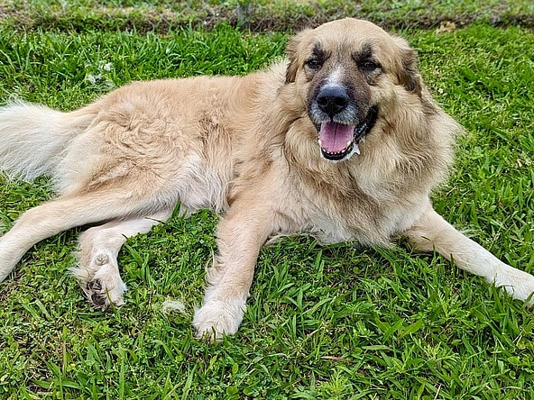 Tom is the name and cuddling is the game. This big boy is a six-year-old mixed breed dog with a stunning coat of golden-blonde fur and rich brown highlights. He weighs about 85-90 pounds, but he thinks he’s a lap dog and will snuggle up to you whenever he can. Tom is very sweet and friendly around people and will sit quietly for your attention. He loves getting tickled on his head and giving you his paw. He is not very interested in toys or games, but he is curious and smart and would love to learn some new tricks with you. Tom is looking for a new family who can give him lots of love and care. He is a gentle soul who just needs some guidance and structure to help him become the best dog he can be. He is willing to learn and eager to please, so with some positive reinforcement and patience, he can overcome anything. Tom deserves a second chance at happiness, and he hopes you will give him that opportunity. If you are looking for a loyal and affectionate friend who will brighten up your days, come meet Tom!