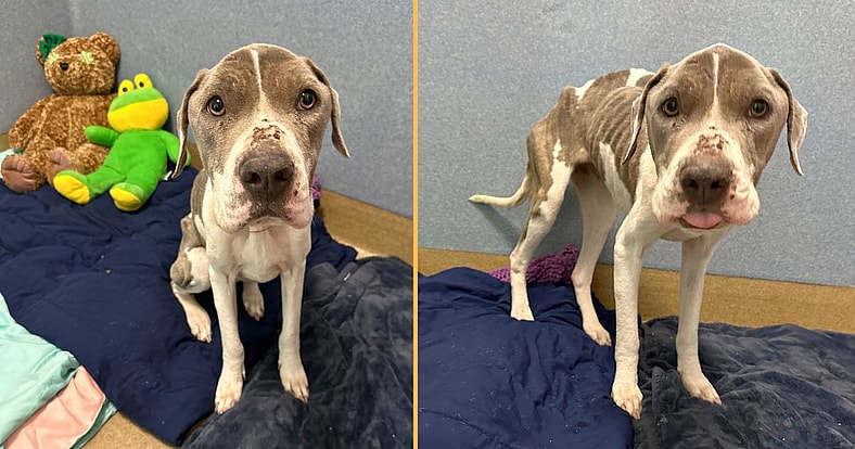 Lovebugs Rescue pulled her from the shelter and is being fostered personally by Kelly of Lovebugs! Here’s what she had to say: “So far her test results are coming back normal for a malnourished dog. Which indicates that her poor condition is not the result of something medical going on, rather that she was starved. Whether intentional or not, we don’t know. She was turned into the overnight drop box at the shelter as a stray, and that person did leave their contact, so likely not a former owner. But the question remains, how did she get in this condition?