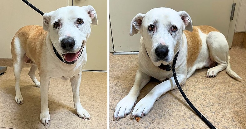 This senior Labrador Retriever mix was found by Animal Control, discovered in a vacant home with no one around. She was found wearing a collar and leash, however without an ID tag, it’s unknown who the owner is. Rocky nicknames her Waffles because when she finally comes around, she loves the waffle treats he gives her.