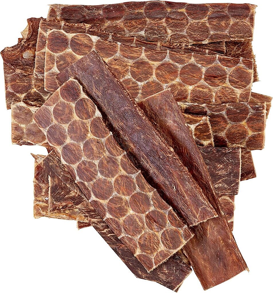 Beef Esophagus Chews, sometimes marketed as gullet sticks, are made from the cow’s esophagus and are rich in glucosamine and chondroitin, which support joint health. Their chewy texture also helps in cleaning teeth and gums, making them beneficial for oral health.