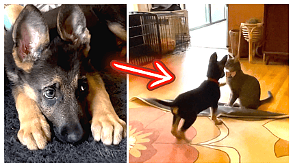 Some dogs chase cats, but this welcoming big sister is happy to cuddle and play with her new kitten sibling.…