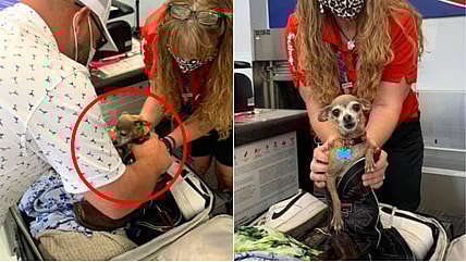 A Texas couple was shocked to discover their beloved pup hiding in their luggage as they checked in for a…