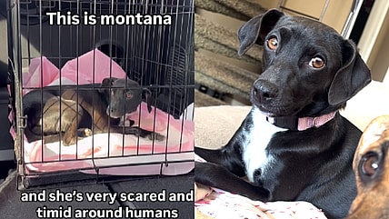 A once-feral dog, Montana, sheds her fears and runs joyfully to her foster dad in a touching TikTok video, showcasing…