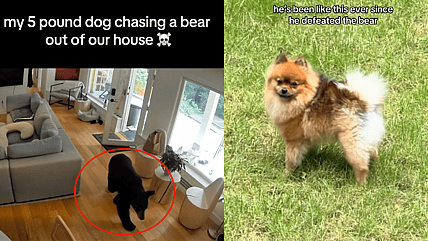 A 5-pound Pomeranian named Scout became a viral hero after bravely chasing a black bear out of his Vancouver home,…