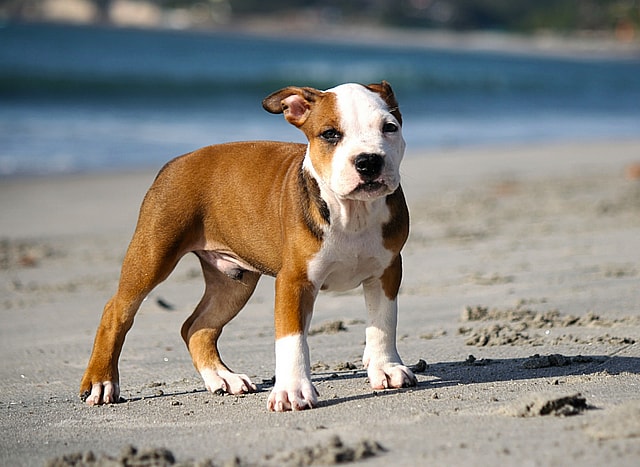 Like the blue nose mix, a brindle mix is a color variation. These pups will have gorgeous marbled coats. Their fur is often predominantly dark with mixes of gorgeous lighter colors throughout. Dark brown and tan is one of the most common and desirable brindle varieties.