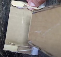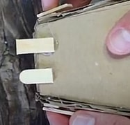 7. On one side of the 9×3.25 inch pieces of cardboard, make a hole for the paper roll to stick out of. This will be about 10inches from the bottom and 1.5 inches in from the left.