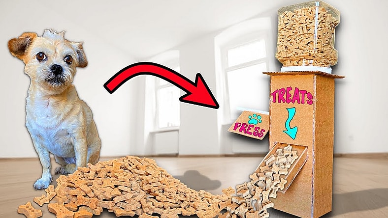 - Cut out 2 pieces that are 4×4 inches, one piece will be for the base, and the other will be for the push push mechanism your dog pushes with their paw.