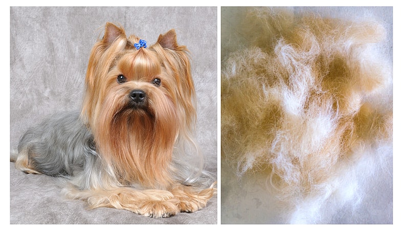 It’s completely normal and healthy for a Yorkie to lose some hair throughout the day– everything with hair or fur sheds, after all. However, excess shedding is often a sign that something is wrong with your dog. Hair loss is a common sign of stress, a poor diet, or allergies. On the more serious side of things, excessive hair loss may also indicate that your puppy is sick or may have parasites.