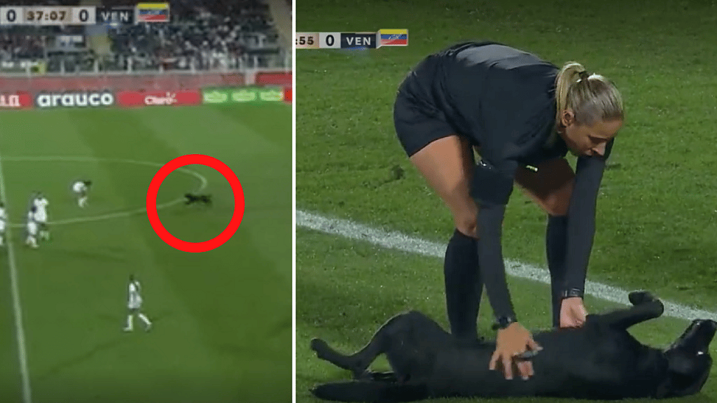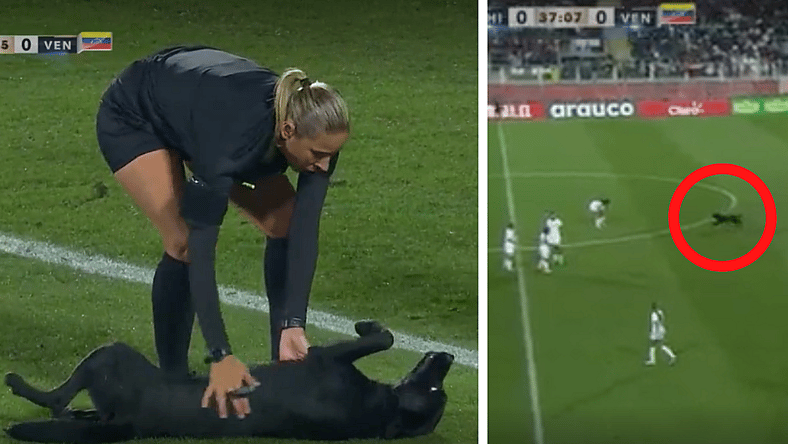 Dog Runs Across Field During International Soccer Match, Then Stops For Belly Rubs