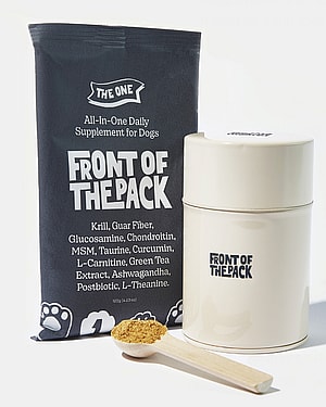 I highly recommend using a supplement on your dog’s food, not matter what you feed them, to ensure the meal is balanced and they are getting all the right supplements to help them stay healthy. The supplement I use is called The One from Front of the Pack. It has 12 ingredients that have been clinically-proven to keep your dog’s joints, skin, heart, digestion, and even their breath in tip-top shape. It’s also a powder, so easy to sprinkle on your dog’s food. For a limited time, when you buy one month you get a second month free.