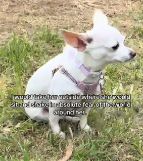 “I would take her outside where she would sit and shake in absolute fear of the world around her,” Georgia captioned in an emotional TikTok video.