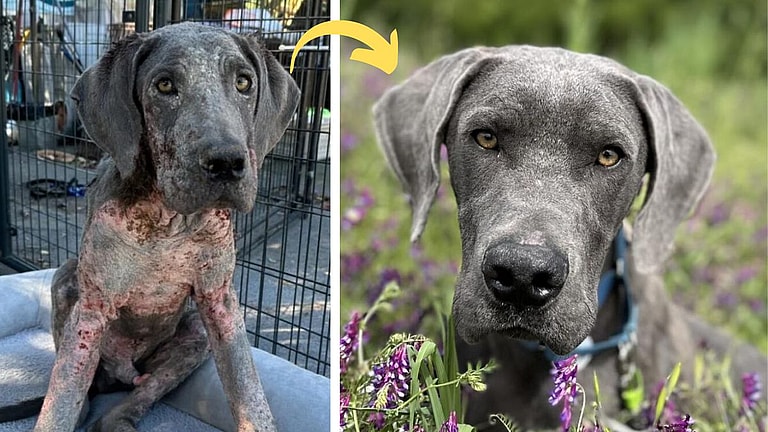 Amazingly, Ryder started to improve a little more each day. After some vet visits, meds, skin treatments, and plenty of love, he healed both inside and out. His contagious mange gave way to a gorgeous coat of gray fur, and he put on some much-needed weight. Even better, that nasty respiratory infection was pretty much gone!