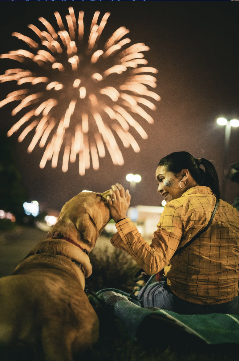 “Fireworks combine loud noise with unpredictability, which is a perfect recipe for triggering fear responses in dogs,” says Dr. Lisa Radosta, DVM, DACVB. “Dogs don’t have the ability to understand what’s happening or when it will end.”