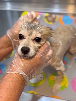 Post-grooming, the transformation was remarkable. The Pomeranian, once hidden beneath mats and dirt, now sported a cleaner, healthier coat. Her appearance had drastically changed, and with it, her demeanor seemed to improve as well.