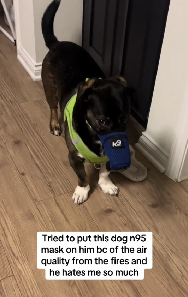 LA Wildfires Forced This Dog to Wear a N95 Mask—And He’s Not Having It!
